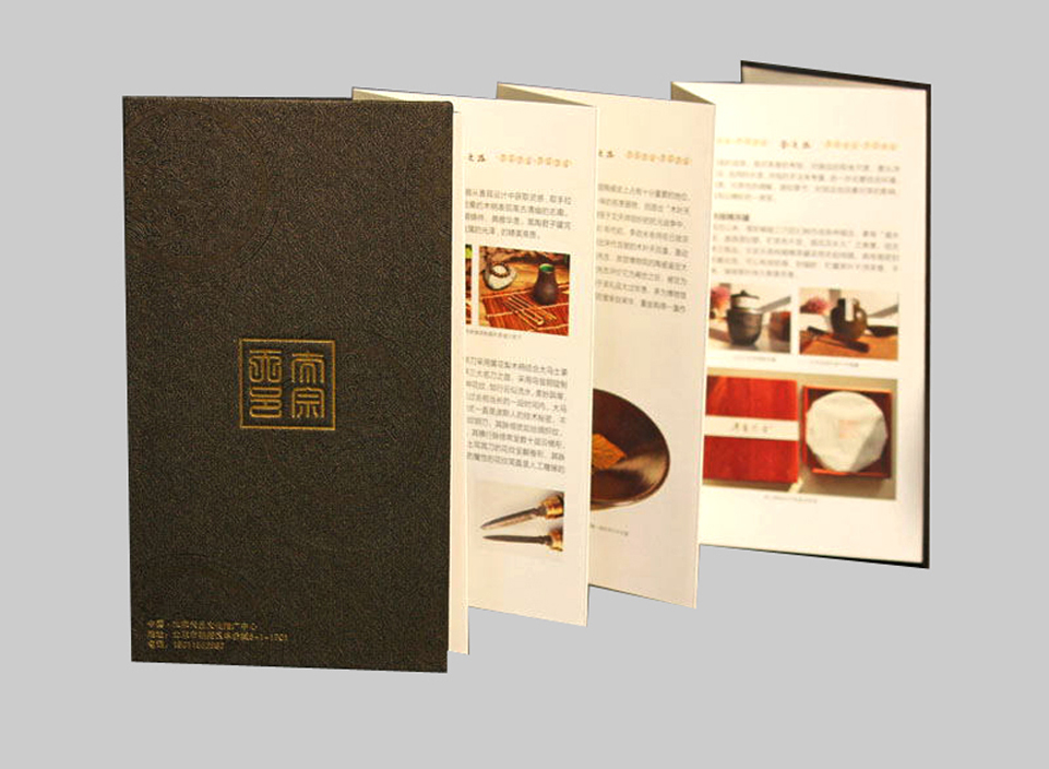工藝:全部四色加金印刷,封面燙紅、燙金,壓線,折頁。